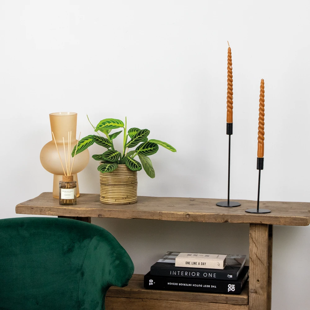 le maranta lemon lime est l’une des nombreuses espèces végétales purificatrices d’air de la famille des marantacées. Cette plante d’intérieur est connue sous de nombreux surnoms, mais l’un des plus connus est la plante de prière. Elle doit ce nom à ses déplacements nocturnes. En plus du fait que ce surmatelas est facile à entretenir, il vole également la vedette dans n’importe quel intérieur. Sa feuille de forme unique, pleine de dessins de feuilles magiques et de couleurs, en fait une apparence éblouissante dans n’importe quel intérieur. Saviez-vous que la maranta est en fait une véritable plante suspendue, mais qu’elle pousse d’abord vers le haut lors de sa poussée de croissance ?